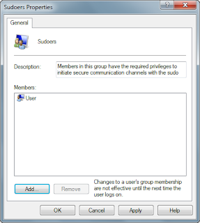 3. After installation is complete, a new group added to local computer, group name is “Sudoers” (Figure 5):